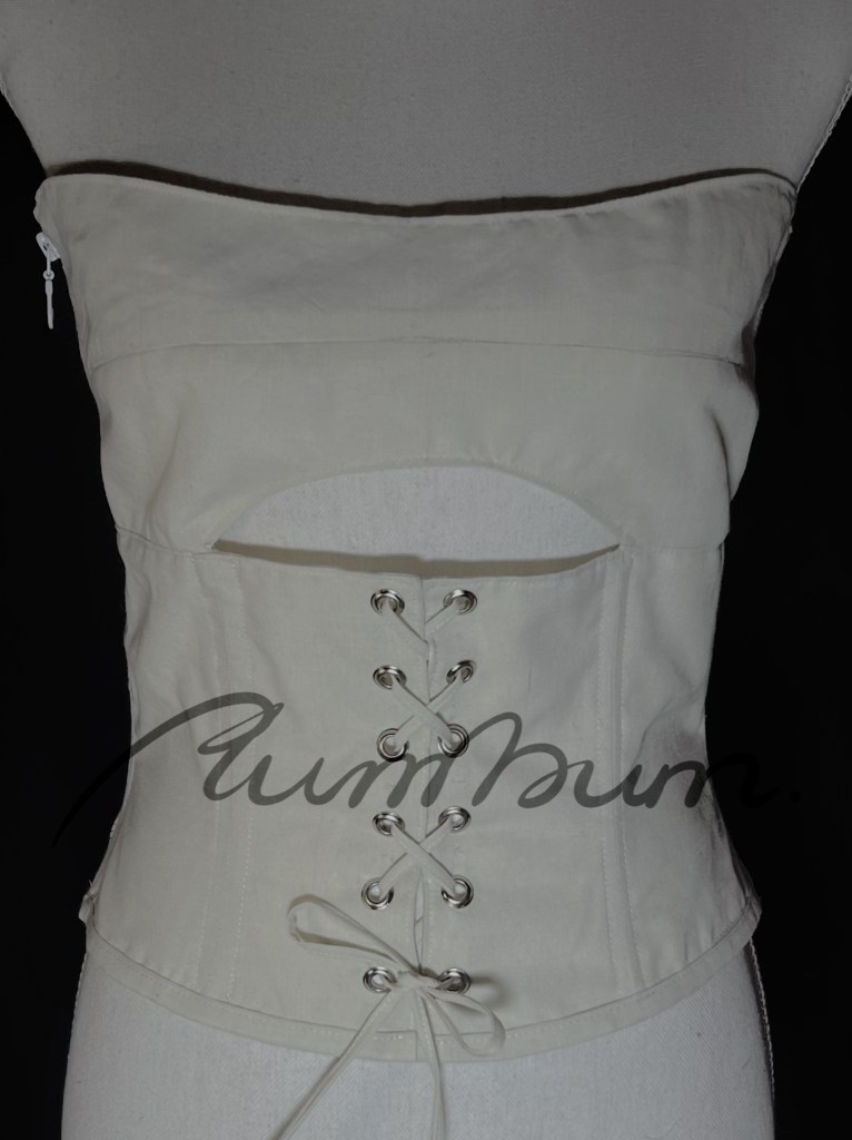 This simple design is inspired by corset elements, but it’s a top piece. It can be worn as a standalone top or layered over a shirt.