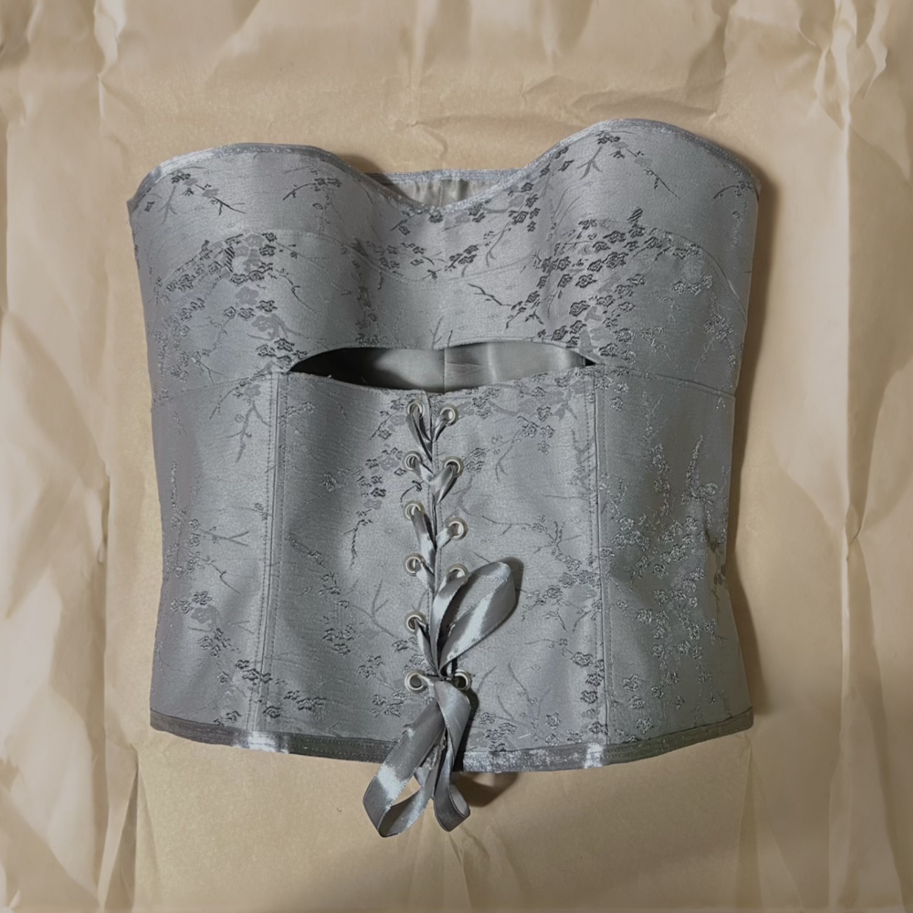This simple design is inspired by corset elements, but it’s a top piece. It can be worn as a standalone top or layered over a shirt.